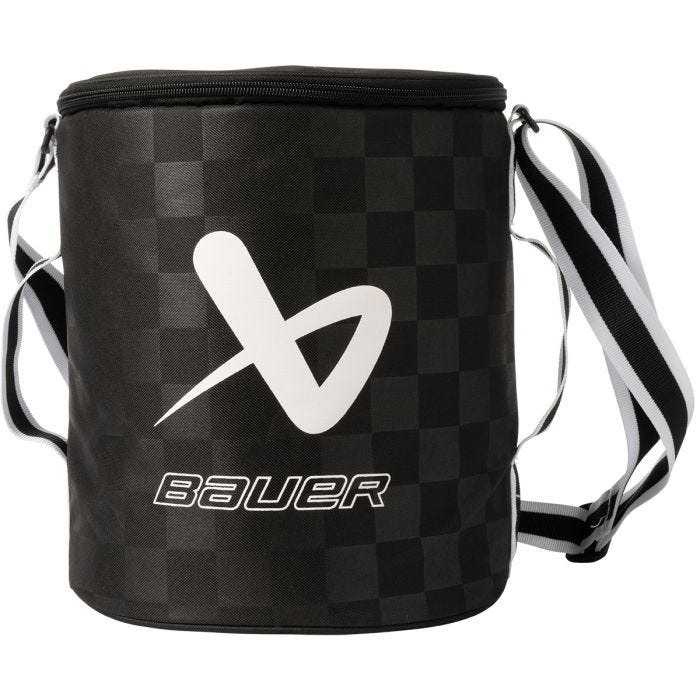 Сумка для шайб Bauer 2025 пропонує легке транспортування до 75 шайб завдяки міцній конструкції та легкому доступу з відкритим верхом.