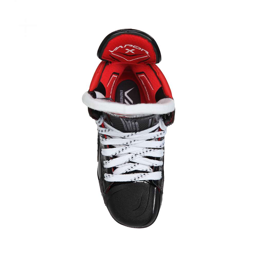 Залишаючись вірними асиметричній концепції лінійки Vapor, хокейні ковзани Vapor 3X Pro роблять крок далі, представляючи нову асиметричну підносок і коробку! Завдяки відгукам, використовуючи профіль сканування гравців, Bauer оптимізував цю нову конструкцію, щоб збільшити вашу силу відштовхування, допомагаючи збільшити максимальну швидкість! Порівняно зі своїм попередником, цей новий носок і коробка трохи коротші за висотою та довші за довжиною.