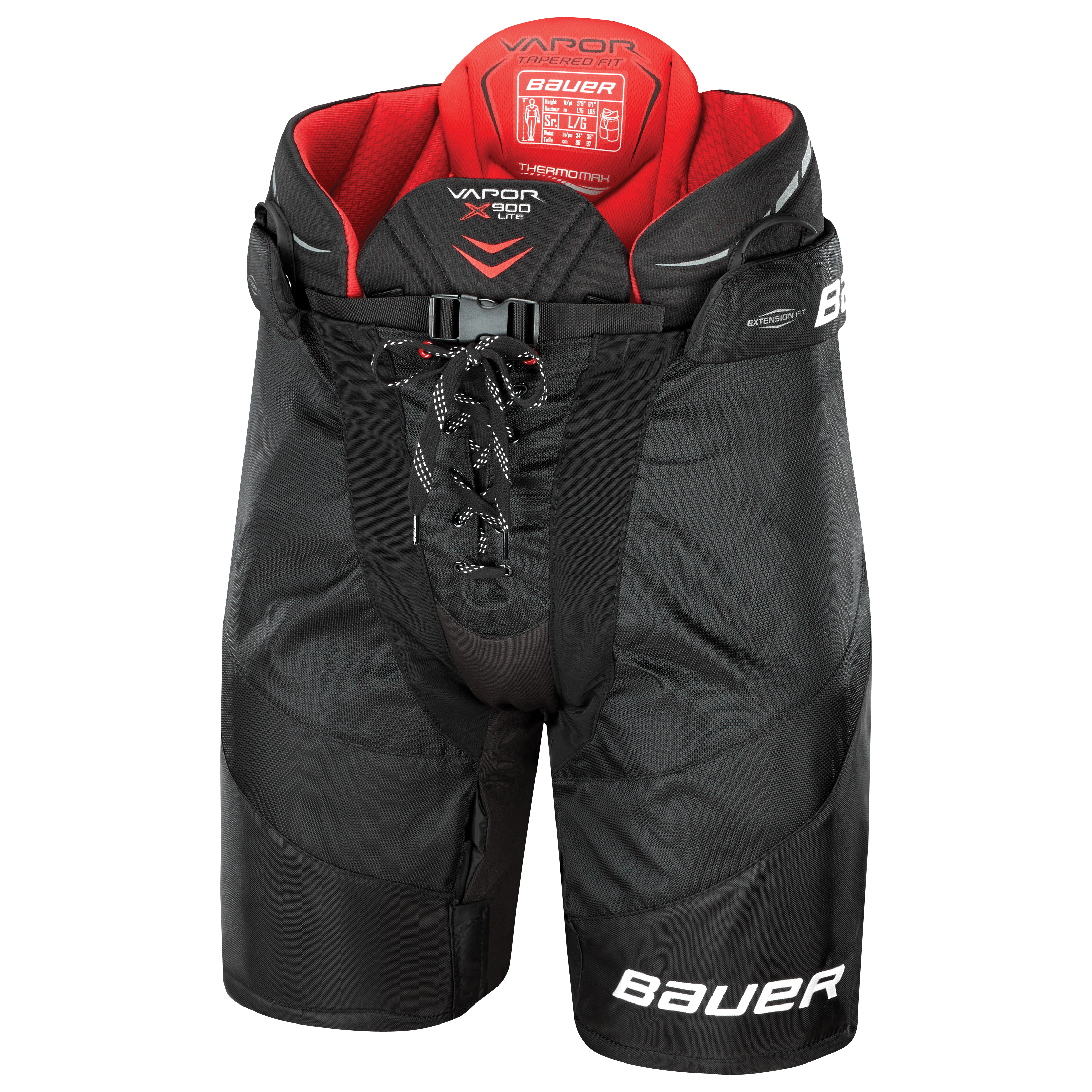 Трусы хоккейные BAUER VAPOR X900 LITE S18 JR юношеская модель профессионального уровня, новинка сезона 2018 года. Трусы имеют высокопрочный чехол, выполненный из нейлона профессионального уровня плотностью 840 Den. Места подверженные максимальному износу дополнительно усилены. Эластичные, сетчатые вставки в чехле создают отличную циркуляцию воздуха и позволяют защитному снаряжению двигаться вместе с телом игрока. Протектор, закрывающий позвоночник, имеет независимую, подвижную конструкцию Free Flex. В качестве защитного наполнения в данном элементе используется пена высокой плотности HyperLite. Область почек закрывается завышенным элементом, в котором в качестве амортизирующего наполнения используется пена высокой плотности HyperLite. Область тазобедренных суставов защищена элементами, выполненными из легкой пены и пластиковых вкладок. Набедренные щитки выполнены из пены и усилены пластиковыми вставками, которые обеспечивают максимальное покрытие бедра. Проложенный пеной двойной плотности пояс обеспечивает дополнительную защиту в области талии. Трусы этой модели имеют внутреннюю систему ремней фиксации для надежной посадки на поясе. Система подгонки, которая предусмотрена в данной модели для создания удобной посадки, позволяет добавить 1дюйм (2,5 см) в длину. Кроме того трусы имеют традиционную систему шнуровки для дополнительной фиксации на теле игрока. Фирменный материал подкладки Thermo Max обрабатывается по технологии Sanitized, которая препятствует возникновению неприятных запахов в процессе эксплуатации и сохраняет экипировку всегда свежей.